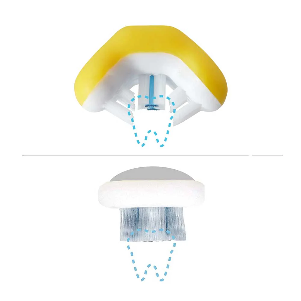 - Triple-Angle: Rounded, triple-angle bristles gently clean all sides at once